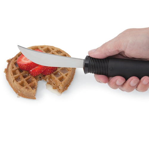 Couteau incurvé spécialement conçue pour les personnes ayant une prise faible ou une coordination limitée de la main
